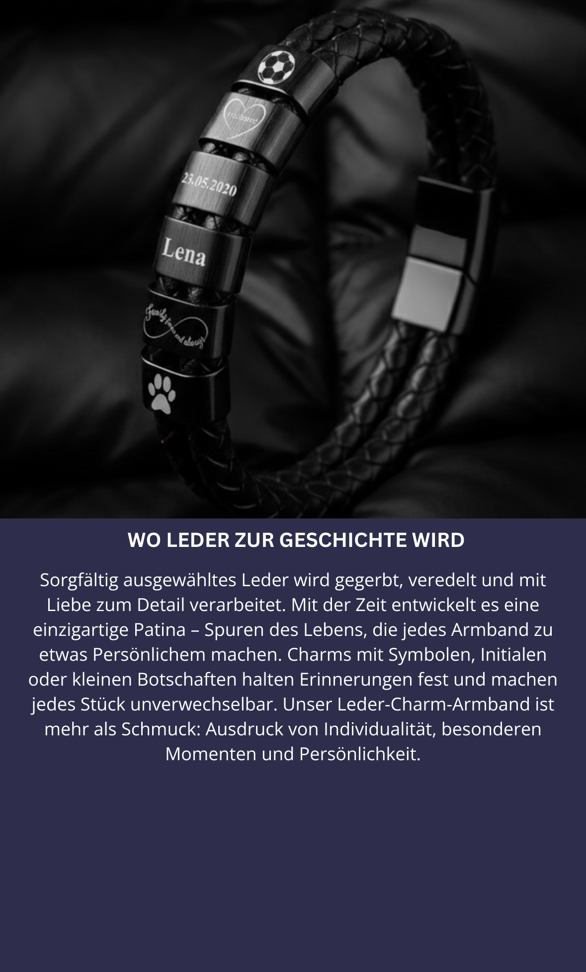 Dein Leder-Charm-Armband ist für 24 Monate gegen Material- und Herstellungsfehler abgesichert. Sollte ein Verschluss, Charm oder das Leder selbst nicht einwandfrei funktionieren, reparieren oder ersetzen wir dein Armband – unkompliziert und zuverlässig.