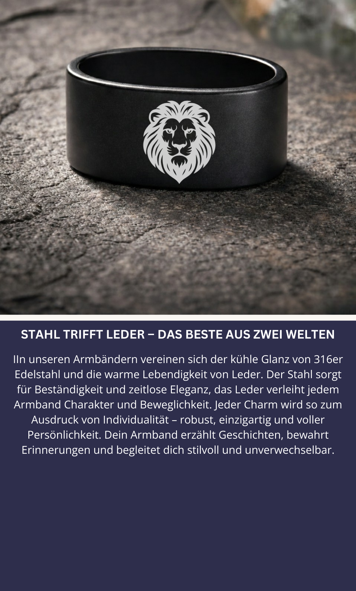 Meterial Unser Armband besteht aus langlebigem 316L-Edelstahl und hochwertigem echten Leder – robust, wasserfest und angenehm auf der Haut